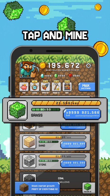 Cube Miner Tycoon предлагает вам построить свои финансовую империю, добывая золото и продуманно распределяя ресурсы, добытые даже когда вы вне игры. Традиционно для игр этого жанра начинать вы будете с малого и как начинающий майнер начнете делать первые шаги к цели с киркой в руках. Это будет длинный и сложный путь и настоящими испытаниями.
