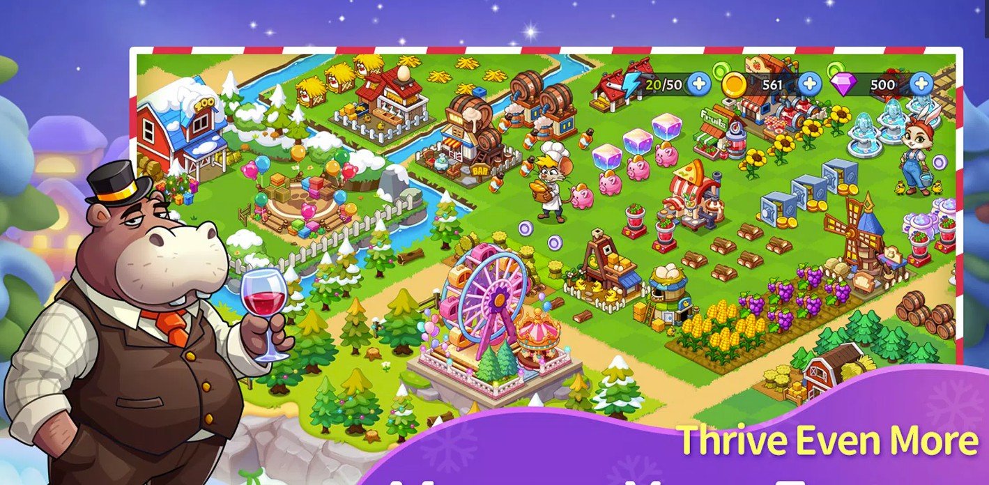 Farm Merge ― казуальная головоломка с элементами стратегии в которой вам нужно управлять собственной фермой, объединяя одинаковые растения, животных и постройки для получения более продвинутых версий. Суть игры в том, чтобы развивать хозяйство, выполнять заказы и открывать новые территории. Геймплей предлагает такие механики как посадка, сбор урожая и merge, где каждое объединение приносит больше ресурсов и открывает новые возможности. Постепенно вам предстоит расширять ферму, построить дополнительные здания, участвовать в торговле урожаем и открывают новые локации.