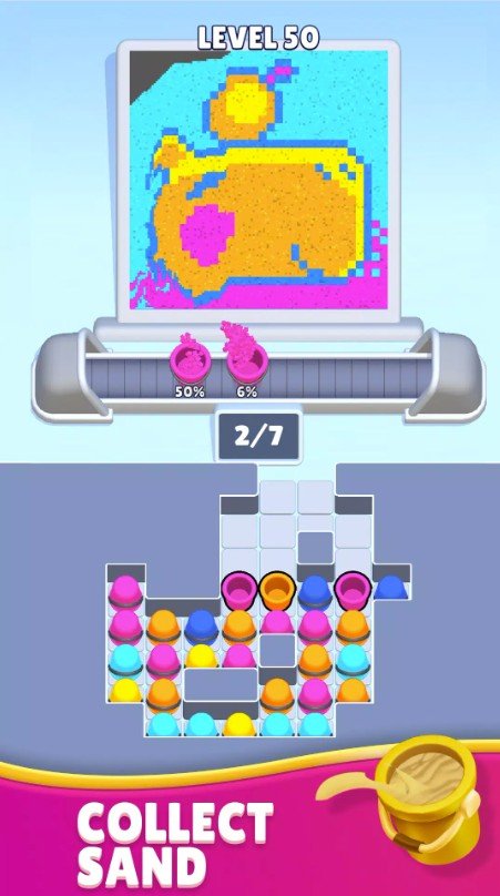 Sand Loop ― головоломка, где вам нужно рисовать песком разные картины и изображения, используя разноцветные виды окрашенного сырья. Ваша задача в том, чтобы управлять конвейерной линией с разноцветным песком и ведрами, и правильно засыпать его в нужные емкости. Ну и когда все будет сделано верно, тогда будет проявляться все более новый рисунок. Если же происходят нарушения, то от этого страдает и сама картина. В игре сотни уровней для прохождения, с каждым разом сложность возрастает, и даже будут появляется особе этапы.