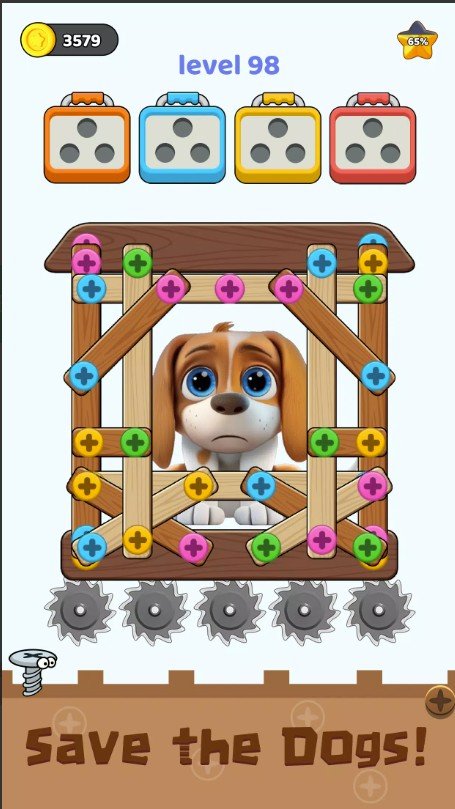 Screw Jam Master ― интересная двухмерная головоломка с болтами и гайками. Суть этой логической игры в том, чтобы разбирать сложные конструкции, состоящие из металлических пластин, штифтов и разноцветных винтов. Основная задача заключается в том, чтобы откручивать болты в правильной последовательности, освобождая заблокированные детали. Если же спутать последовательность, можно не только не открутить нужные части, но и даже заблокировать другие. Поэтому продумывать последовательность шагов нужно с максимальным вниманием.