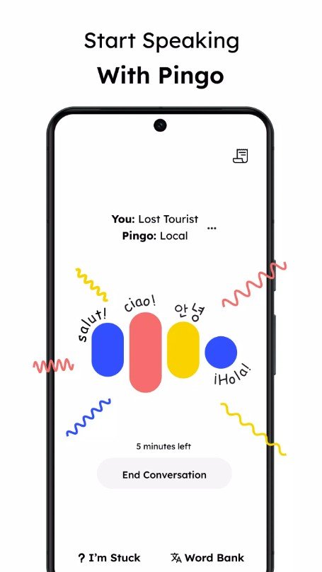 Pingo AI - приложение для изучения иностранных языков, где вашим собеседником выступает искусственный интеллект. Приложение поможет преодолеть языковой барьер, развить разговорную речь и уверенность в общении, используя реалистичные диалоги в смоделированных ситуациях из жизни.