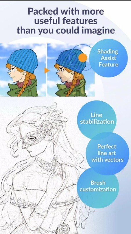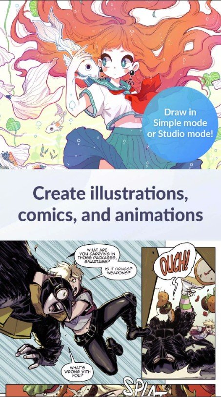 Здесь можно создавать цифровые картины и иллюстрации с использованием сотен настраиваемых кистей под акварель, масло, тушь и карандаш, работать с концепт-артами и дизайн-проектами, делать быстрые скетчи и наброски.