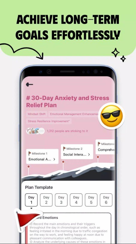 Для быстрого старта есть универсальные шаблоны под разные сферы жизни - учеба, здоровье, работа, личные проекты. Пользователь может добавить виджеты на экран, чтобы видеть свои цели и задачи без открытия приложения. Присутствуют визуальные индикаторы прогресса.