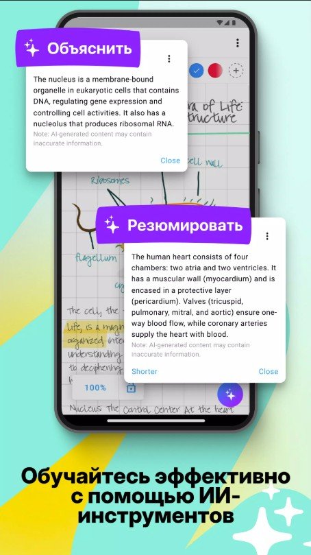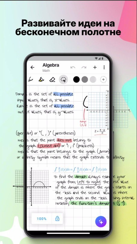 Приложение позволяет заменить традиционный бумажный блокнот. С его помощью вы можете легко конспектировать лекции, создавать интеллектуальные карты для подготовки к экзаменам и организовывать все материалы в одном месте.