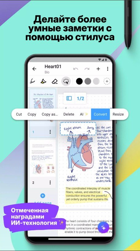 MyScript Notes для студентов - приложение для создания цифровых заметок. Оно предназначено для тех, кто предпочитает делать записи от руки, но хочет получить преимущества цифрового формата: аккуратный вид, легкое редактирование и удобную организацию.