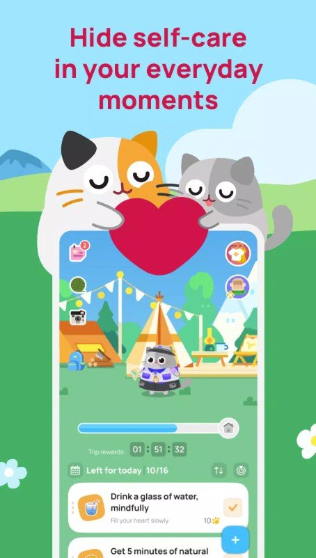 Catzy: Self-Care Journey - популярное приложение из серии «заботы о себе», количество скачиваний которого за довольно короткое время превысило 1 миллион. Присоединяйтесь к этой огромной аудитории утилиты и наведите порядок в мыслях, улучшите самочувствии, верните уверенность в себе. Цель авторов заключалась в улучшении психического благополучия каждому, кто захочет им воспользоваться.