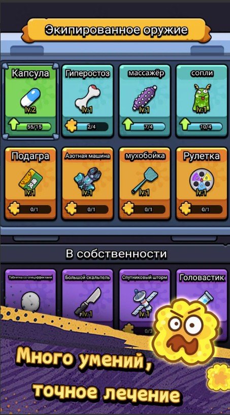 Чтобы уничтожить угрозу, вам будет предоставлен арсенал из разных медицинских препаратов. Множество умений позволит комбинировать разные приемы и находить единственно верную тактику борьбы. Стиль «рогалик» внесет в геймплей нотку неожиданности.