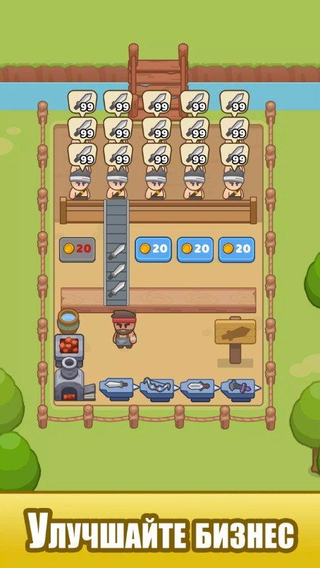 Idle Weapon Shop - история затерявшегося среди леса оружейного магазина, которым вам предстоит управлять. Немного призабытый, с появлением в ваших краях зомбаков он снова стал приобретать популярность. С каждым днем вереница тех, кто намерен защищаться от них с оружием в руках растет. Разного рода стрелки и искатели приключений нуждаются в ваших услугах. Для вас это шанс превратить свой небольшой магазинчик в процветающую империю. Позаботьтесь, чтобы его полки не пустовали. Расширяйте ассортимент и торговую площадь, поменяйте вывеску и продумайте стратегию продаж, чтобы привлечь новых клиентов. С каждым следующим уровнем возможностей для развития будет больше. Но не забывайте о безопасности. Среди покупателей могут оказаться желающие не заплатить за товар. Заведите домашнего питомца, который при необходимости защитит вас от бандитов и рэкетиров. Как ни странно, в этом лесу они есть.
