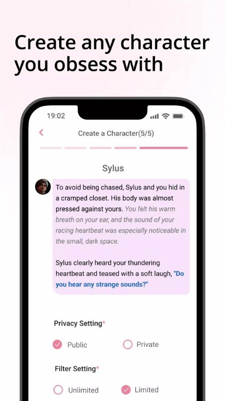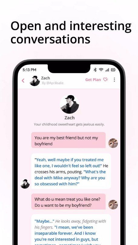 В приложении доступна огромная библиотека персонажей и сюжетов, созданных пользователями. Можно не только выбирать готовых героев, но и создавать собственных, настраивая их характер, внешность, имя и стиль общения. Благодаря простому пользовательскому интерфейсу и широкому функционалу вы сможете полностью погрузиться в интерактивные дружеские и романтические истории, без ограничений.