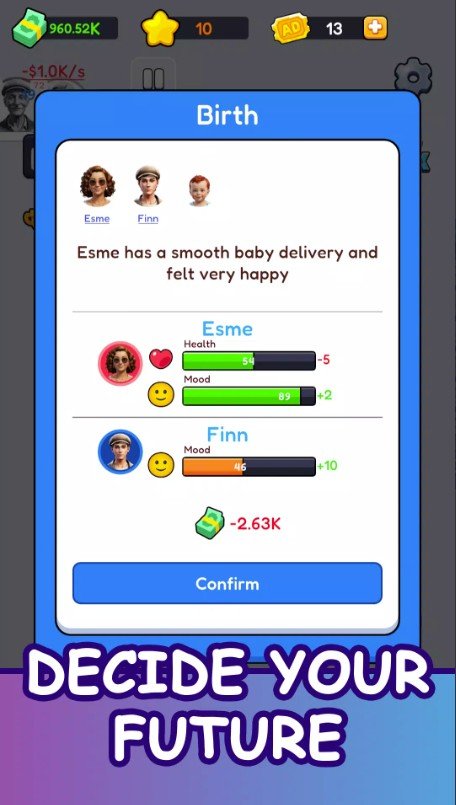 Далее вам предстоит пройти длинный путь, в котором будут создание семьи, рождение и воспитание детей, строительство карьеры, совместные достижения и праздники, успехи и поражения. Будут в ней разбитые мечты, финансовые проблемы, больные дети, сломанная бытовая техника и многое другое. Другими словами, вы проживете целую жизнь и какой она будет полностью зависит от ваших решений. Вы даже сможете построить целую семейную империю из нескольких поколений. Каким будет ваше генеалогическое древо?