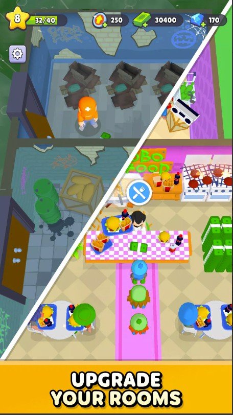 Все построено на казуальном геймплее, где подается сложное в простой интуитивной форме. Есть и аркадные элементы, типа причудливой физики объектов и тел персонажей. Посетители могут сталкиваться, образовывать пробки в узких проходах, сносить разные объекты и тому подобное. Вам же нужно все сделать так, чтобы все происходило более размеренно без лишней суеты и проблем.