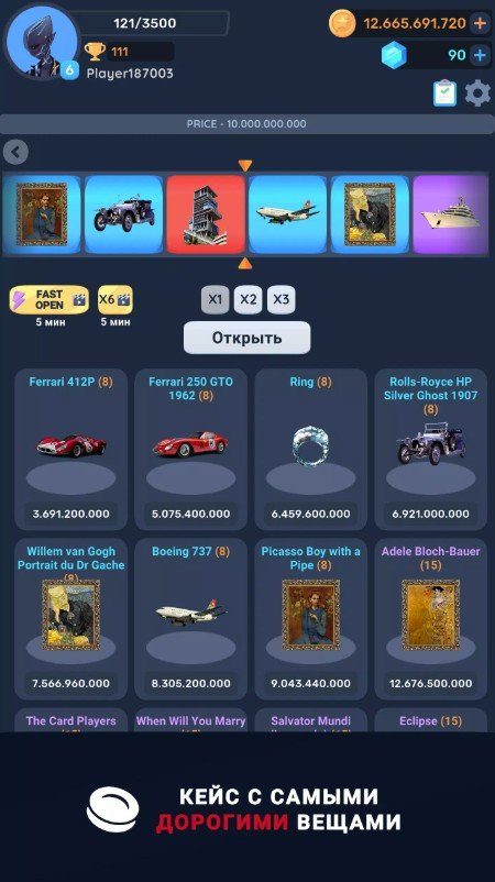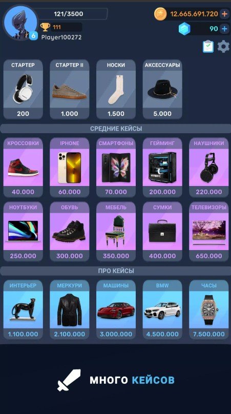 Игра не просто сосредоточена на открытии кейсов. Есть тут и элементы кликера, мини-игры, а также возможность приобретать разные улучшения и бустеры, так и усиления. Одной из фишек игры стала ее качественная трехмерная графика. Каждый кейс детализированный с яркими спецэффектами и анимацией открытия. Интерфейс простой, интуитивный и удобный, так, что от увлекательного геймплея ничего не отвлекает.