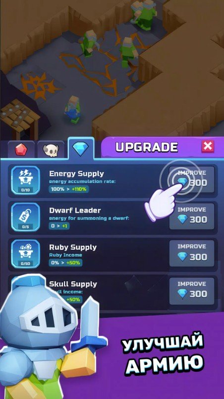 Dwarfs Diggers: Idle Master (Гномы - Копатели) предлагает вам пережить увлекательное и экстремальное приключение под землей. Вместе с командой гномов-шахтеров вы спуститесь в наполненные монстрами подземелья в поисках золота и драгоценных кристаллов. Возглавьте и проведите их через преграды и сложности. Исследуйте пещеры в поисках сундуков с редкими артефактами и пополняйте свою коллекцию золотыми слитками. Вас ждут стычки с гоблинами, ожесточенные битвы с эпическими боссами и другие не менее сложные и опасные испытания. Получайте легендарные награды и используйте их для обеспечения непрерывного игрового прогресса. Но для сбора золота и постоянного движения вперед вам совсем не обязательно постоянно находится в игре. Добывать необходимые для этого ресурсы можно в автономном режиме. Особенно он заинтересует любителей казуалок, которые отдают предпочтение постепенному игровому прогрессу. Также есть в игре специальные события и ежедневные миссии, за которые положены дополнительные награды и «плюшки».